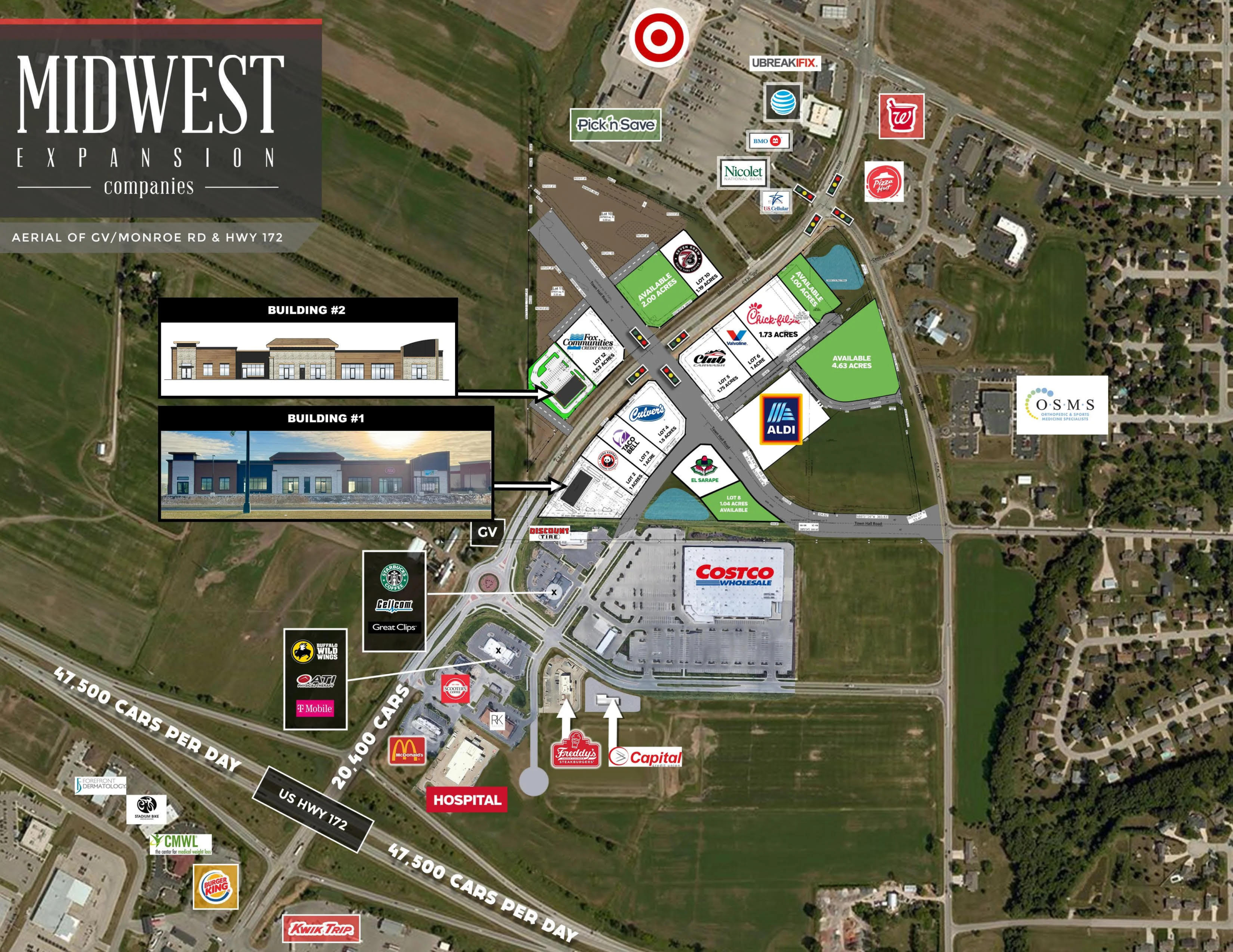 In summary, our locations speak to our beyond 30+ years of experience as entrepreneurs and developers in the Green Bay area. At this time, we are expanding into the Kimberly and Wrightstown, WI markets. Midwest Expansion boasts high-traffic sites as well as clearly visible locations and developments.